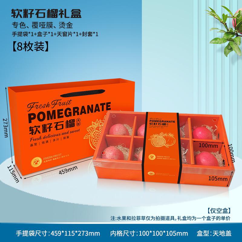 橙色軟籽石榴禮盒8枚裝天地蓋石榴包裝盒禮盒