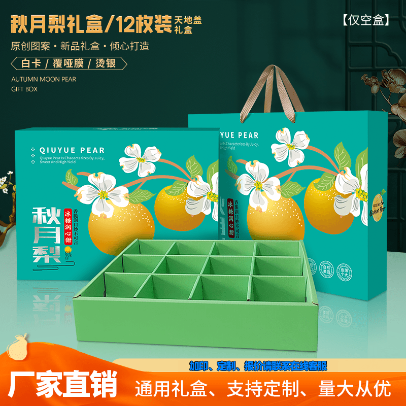湖藍色秋月梨12枚天地蓋白卡款+綠色內托隔板+手提袋